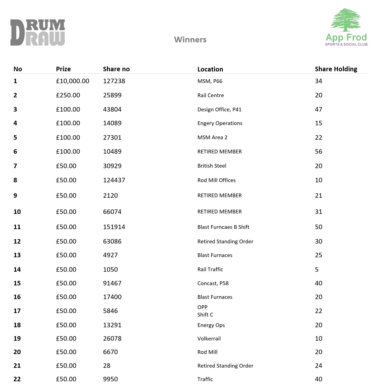 We are pleased to announce the winners of this month's Drum Draw. Congratulations to all our prize recipients-written notifications have been sent, and the full list of winners can be viewed below.